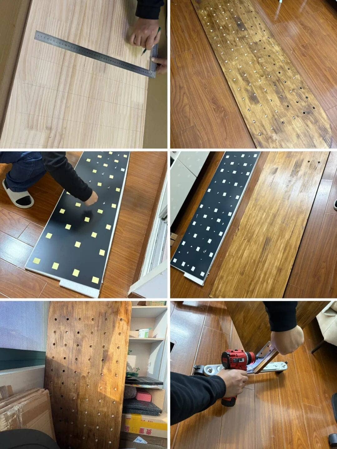 DIY全身镜+洞洞板。画线→打孔→贴镜子→装滑轮