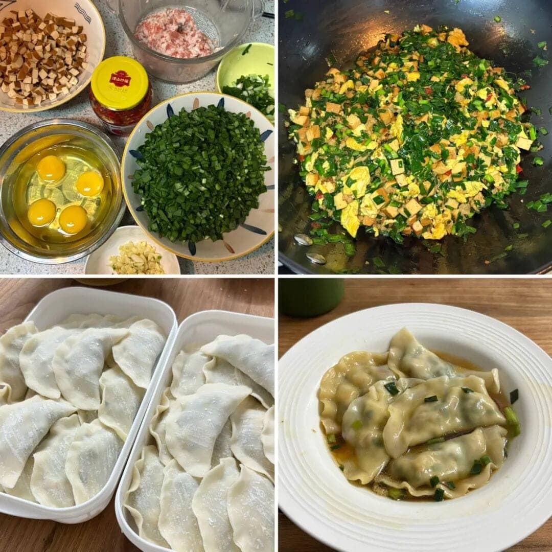 冬至两个人在家包饺子,一人做馅,一人包。